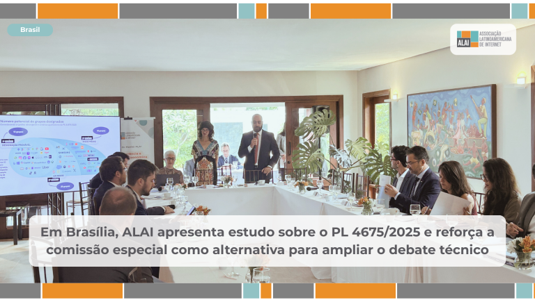 O debate sobre a regulação econômica de plataformas digitais avançou nesta terça-feira (24), durante evento em Brasília que apresentou o primeiro estudo de impactos econômicos relacionados ao Projeto de Lei 4675/2025. O encontro foi promovido pela Associação Latino-Americana de Internet (ALAI), reunindo representantes do poder público, parlamento, sociedade civil e do setor privado.